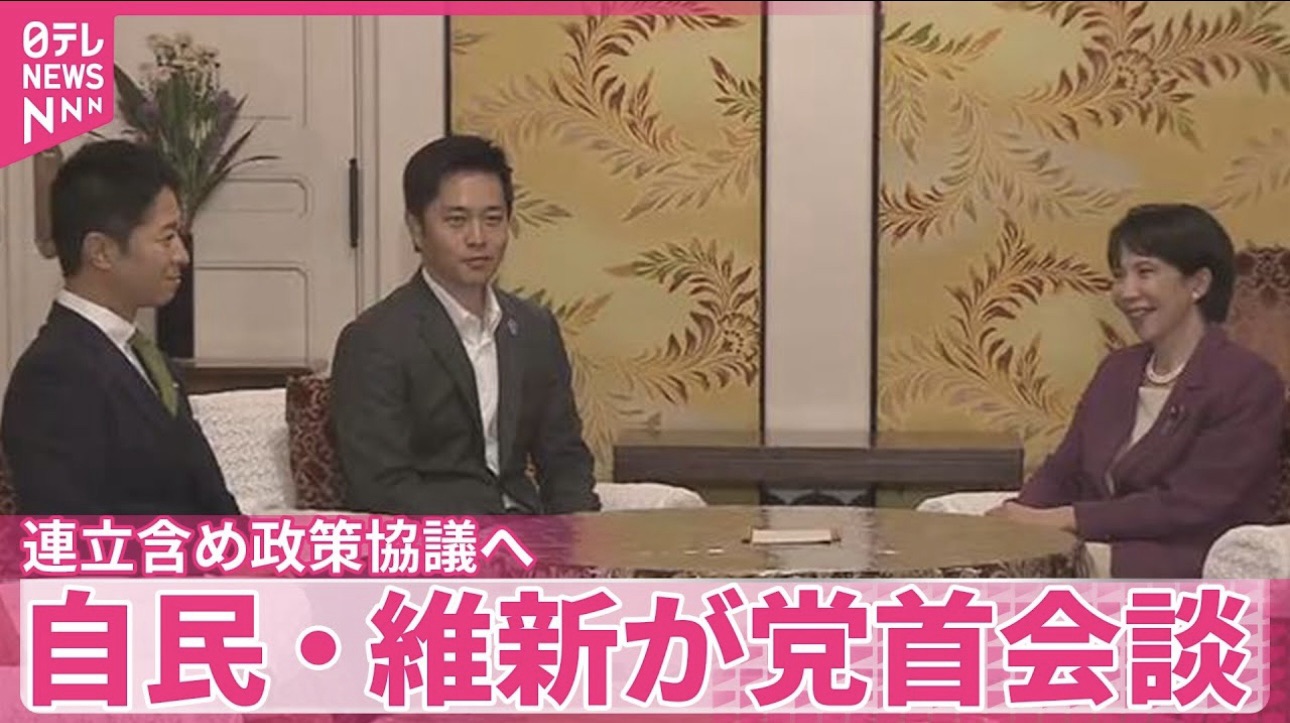 自民党の総裁に就いた高市早苗氏は、15日、維新の代表と国会内で会談。連立政権樹立を含めた協力を要請し、16日には政策協議を通じて「憲法・皇統・安全保障・エネルギー」など国家運営の基盤となる項目で共通認識が多かったと確認されています。